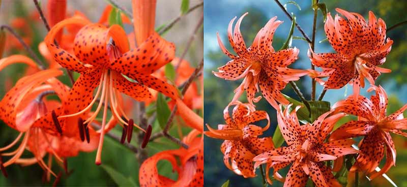 エレガントオニユリ(左)と八重咲きオニユリ (フリー素材より)