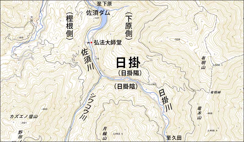日掛周辺地図 出典:国土地理院地形図(地名拡大、地名追加等)