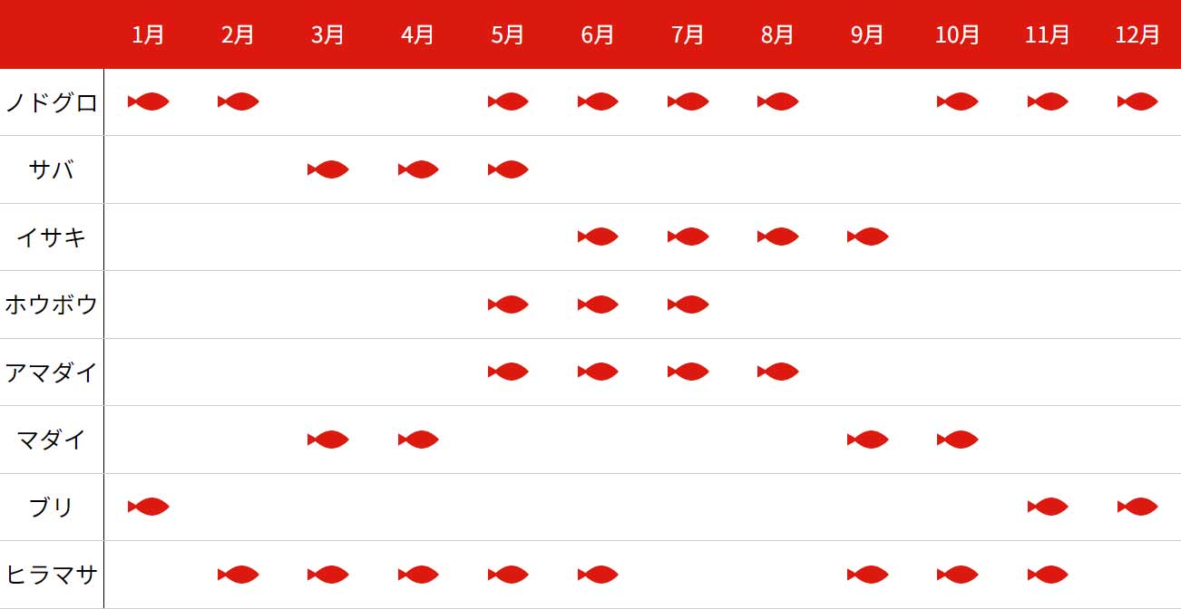 季節ごとの魚の旬(厳原町漁協佐須支所のホームページより)