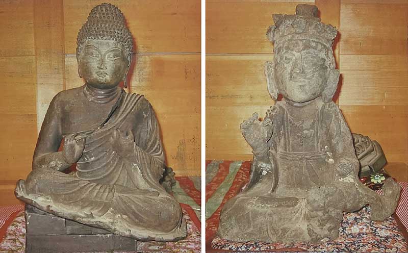 国指定重要文化財の銅造如来坐像(左)と銅造菩薩坐像(右)