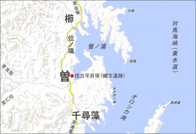 対馬東海岸のほぼ中央、南東に開いた浦口と大きく湾曲した地形が特徴の曽ノ浦。その最奥部に位置する曽は、外洋の風波の影響を受けにくいからか、縄文時代末期から人の営みがあったとされている。