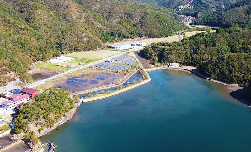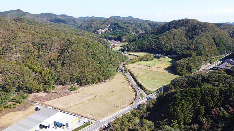 中央の白い建物「心和堂」より海側が江口卯吉が干拓したエリア。左側の小山が敷島